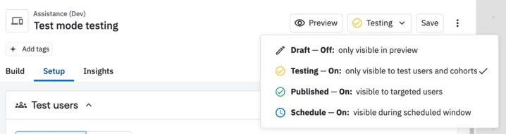 This is a new intermediate status between ‘Draft’ and 'Published’ that allows content testing without full publication. Admins can now QA content with specific users and cohorts without having to push their draft live. Happy testing!